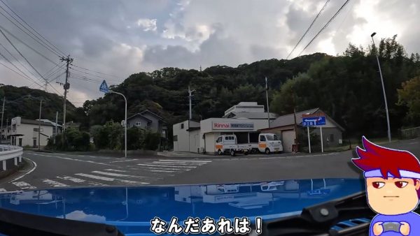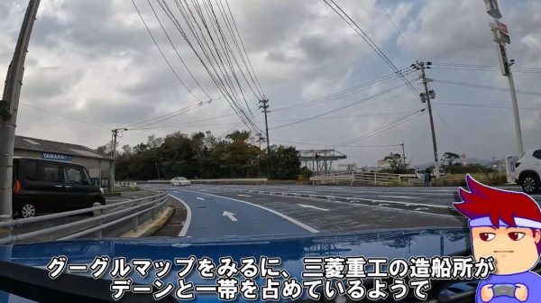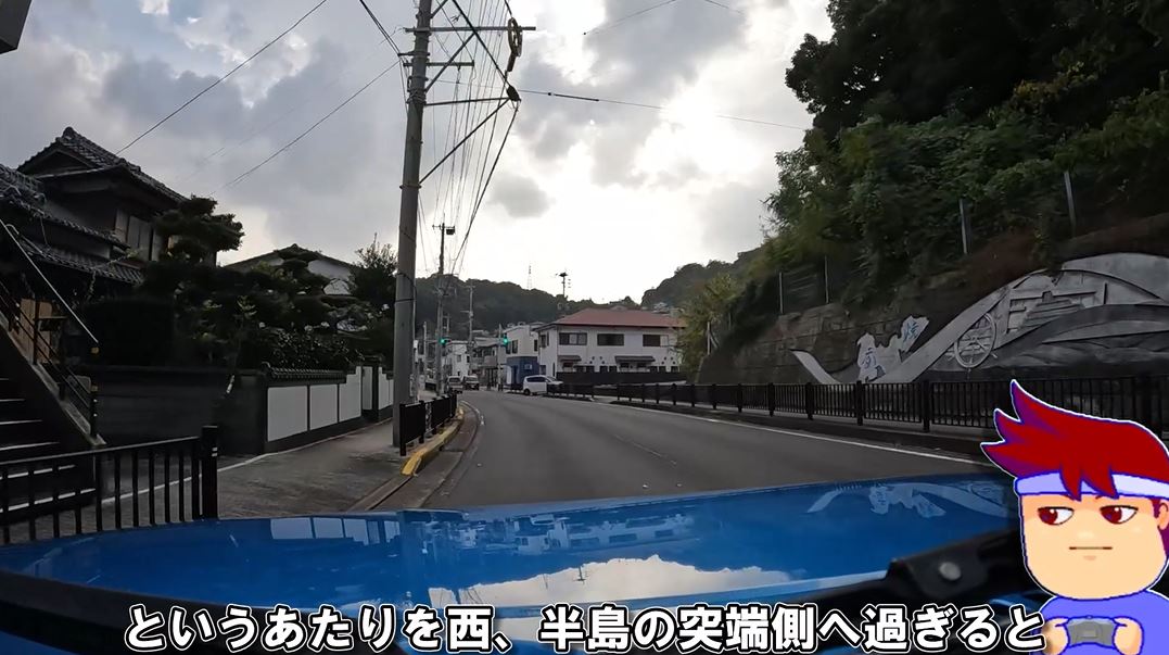 香焼地区が元は香焼島という島だった、という解説をしていると香焼町へ突入。すると「ん?」と何かに気付いたウスイさん。