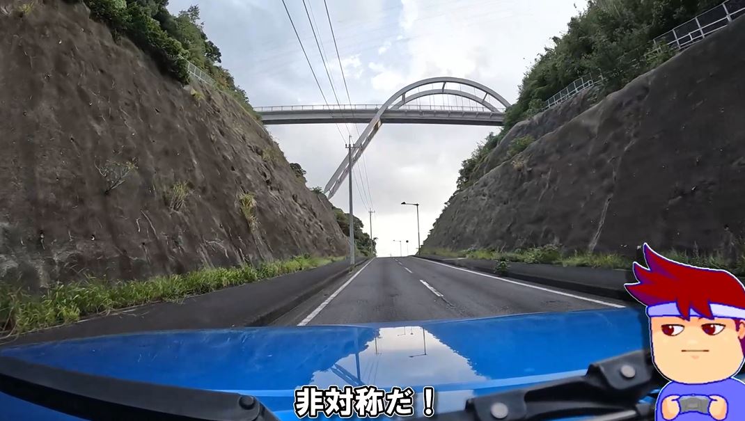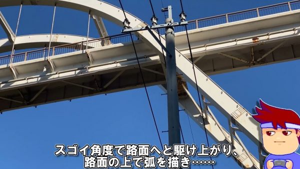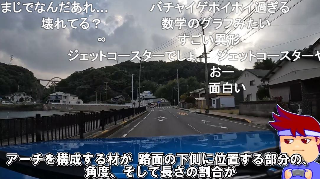 橋にしては見慣れないカーブを描いている構造物へ、視聴者からも「まじでなんだあれ…」「ジェットコースターでしょ」「すごい異形」などの声が寄せられます。