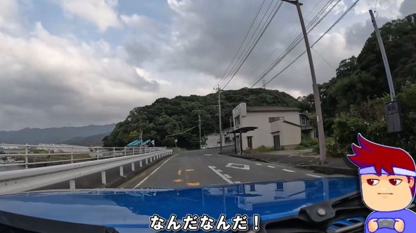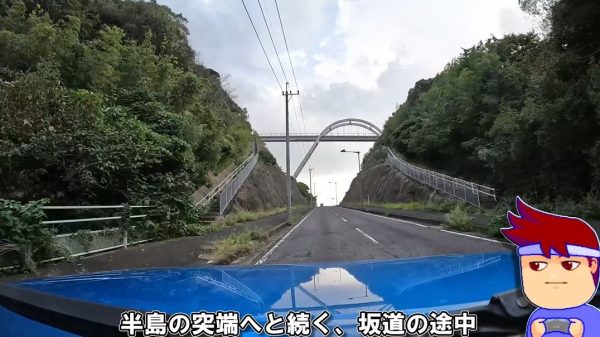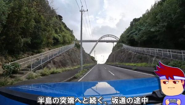 山で隠れてしまいましたが、この道の先にあの橋はあるはず。「なんだあれは!」「なんだなんだ!」と車を走らせるウスイさん。