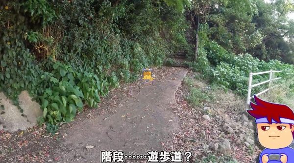登り坂の途中、右手に階段を発見。あの橋へと続く遊歩道かもしれません。