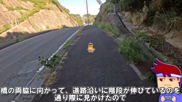 しかし昨日橋の両脇に見えた階段から接近を試みます。この階段よりも登りやすそうだからとのことです。