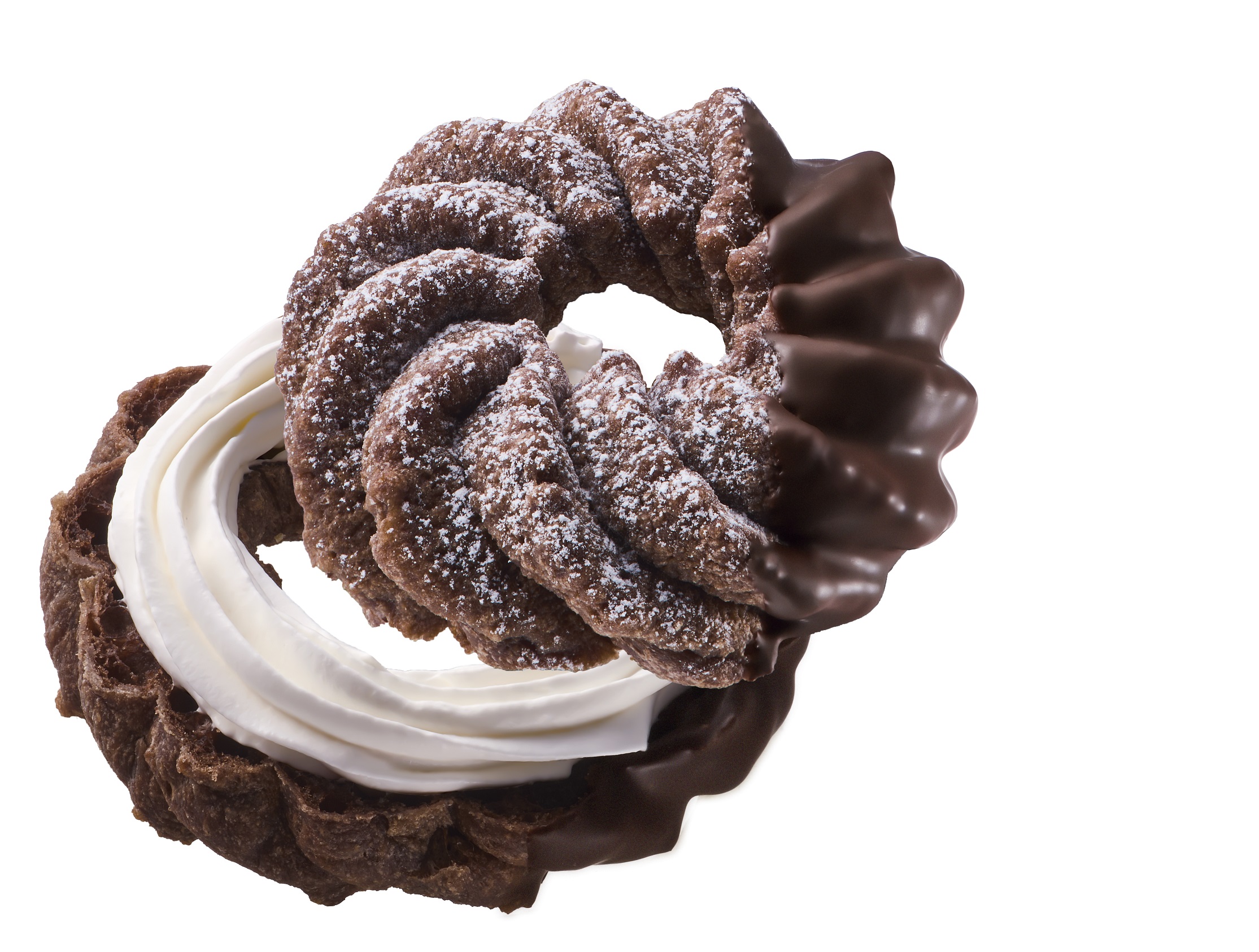 ミルクチョコ風味のふわっと軽いショコラフレンチ生地に、ホイップクリームをサンドし、チョコレートをコーティングしました。