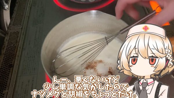 そのままでも悪くないのですが、ナツメグと胡椒を少し足したのが物体Bさんの工夫どころです。