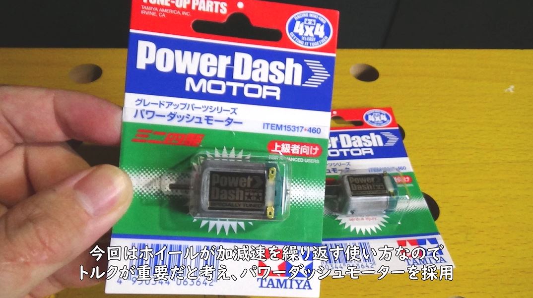 モーターはミニ四駆用のパワーダッシュモーターを使います。
