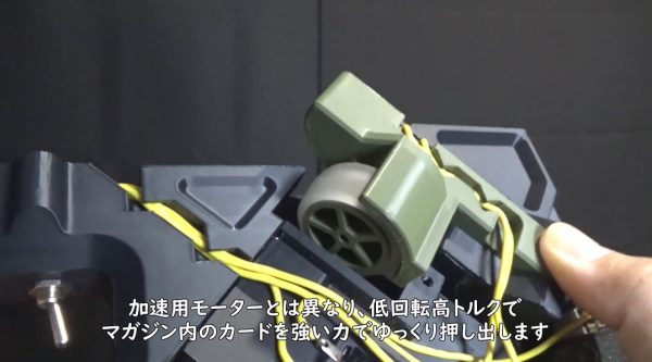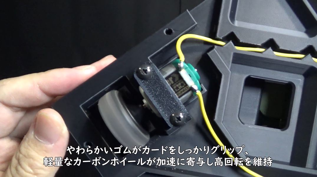 後輪用のタイヤはカードを送り出すフィールドホイールに装着。こちらは低回転高トルクでマガジン内のカードを強い力でゆっくり押し出すそうです。