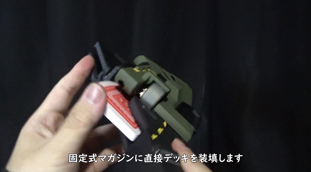 連射が素晴らしい電動のカードマシンガン。ぜひ動画で連続して打ち出されるカードの軌道をご覧ください。なんとも爽快な映像となっています。