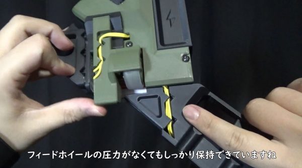 装填テスト。逆さまにしてフィードホイールを浮かせてもカードはしっかり保持できています。