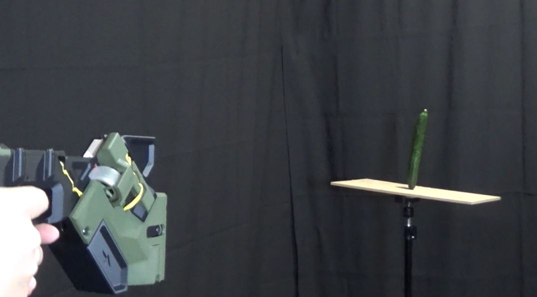 ・“ちょうどいい威力”の「カードランチャー」を作ってみた! キュウリに刺さっても切断はしない切れ味で「かっこいいなw」「犯行予告に使えそう」の反響
