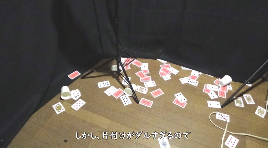 カードを豪快に飛ばすだけに、片付けは大変なのだそうです。