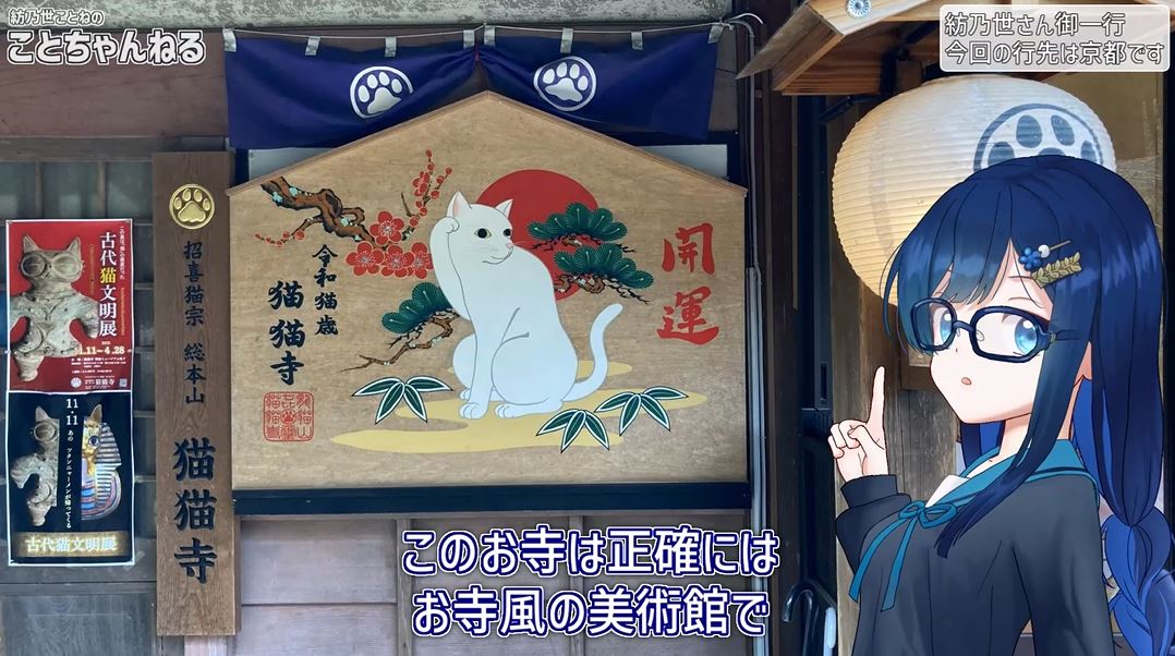 紡乃世詞音と双葉湊音と宮舞モカの3人による旅動画を投稿しているRaybackさんが、京都にある寺院風の美術館「猫猫寺」に訪れた様子を動画にまとめました。