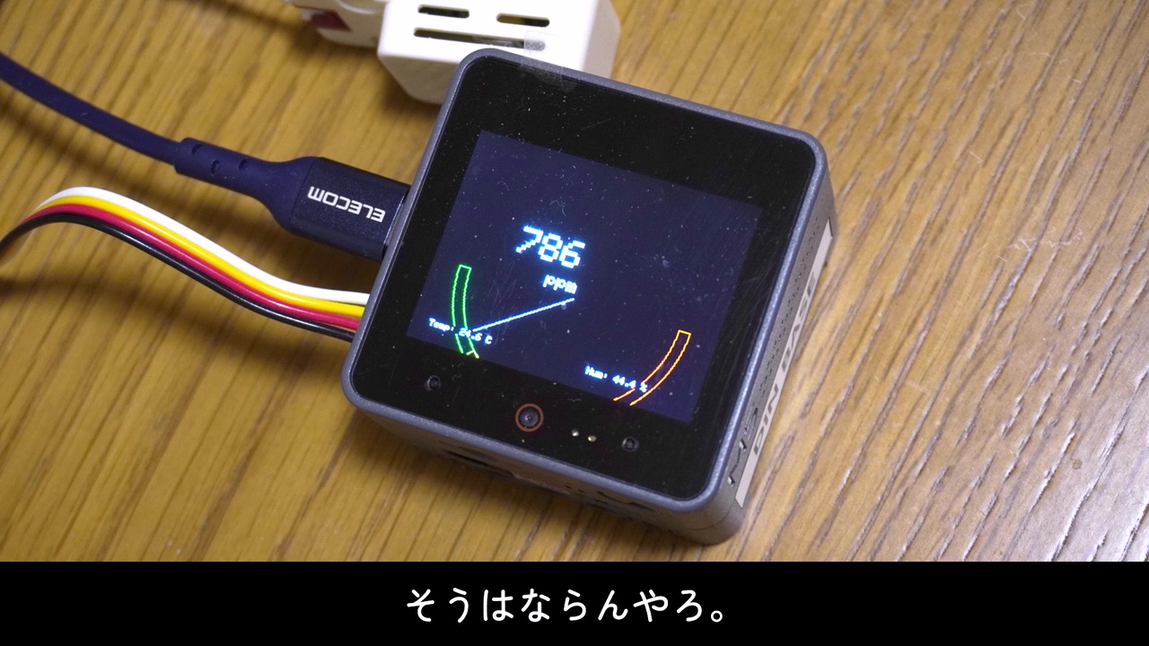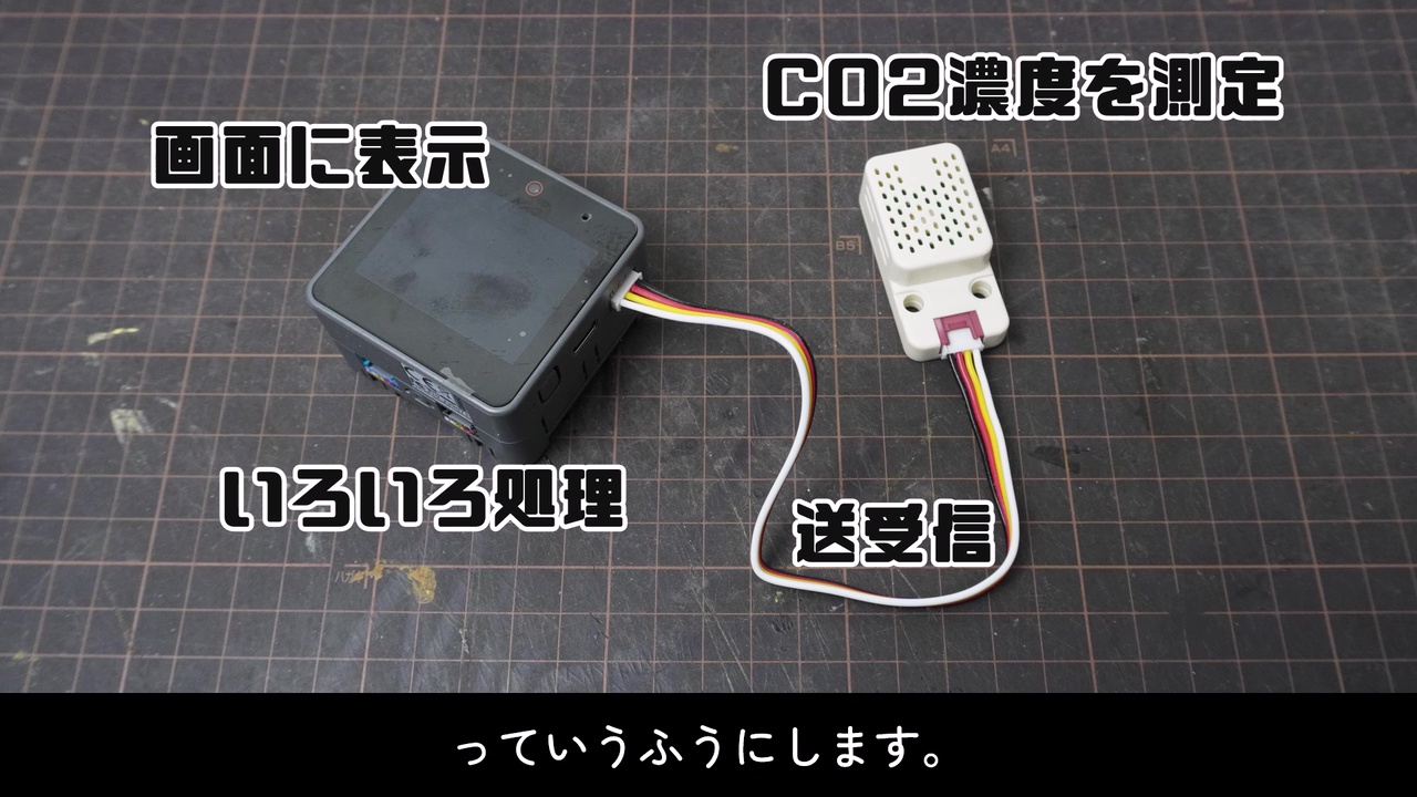 最近、昼過ぎにすごく眠くなるという投稿者。「二酸化炭素の濃度が高いせいではないか」と考え、装置を作ることにしました。部品には小型で扱いやすいマイコンモジュール「M5Stackシリーズ」を採用。ここにCO2センサーをつなげて、結果を画面に表示させます。
