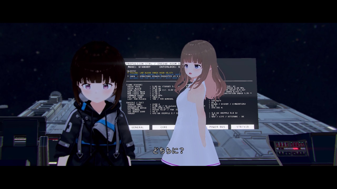 主な登場人物は、主人公(cv 東北きりたん)とアンドロイドのケイ(cv Voicepeak:女性4)。二人の掛け合いは、いわゆる「ソフトウェアトーク劇場」らしいテンポ感を保ちながらも、宇宙科学に関するリアルな専門用語が自然に会話へと組み込まれているのが魅力です。