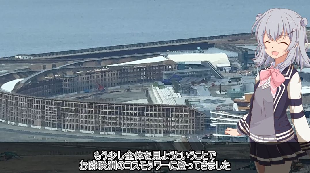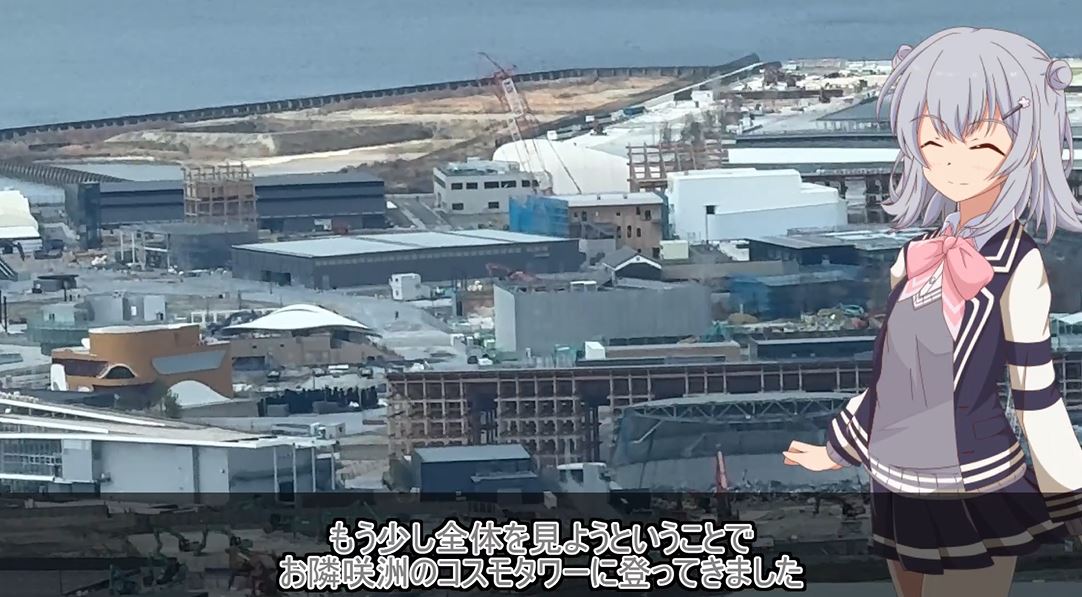 ここでそるとさんはお隣の咲州(さきしま)へ移動。さきしまコスモタワー展望台から会場を見渡すと、解体工事の進み具合がよくわかります。