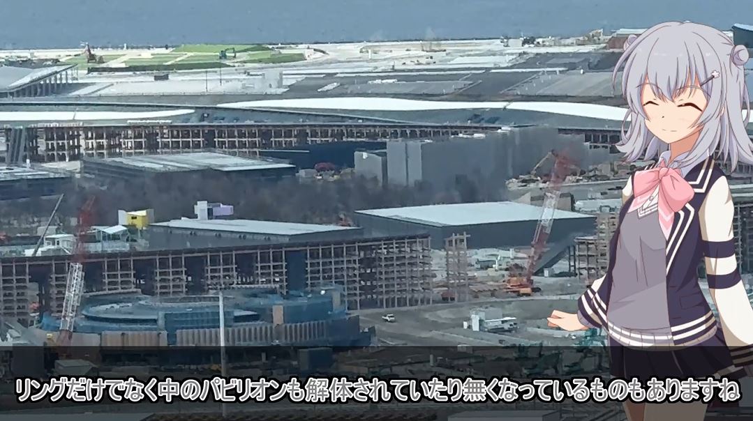 地上に出ると大屋根リングは解体工事中。部分的に保存するようですが、どのような形になるのでしょうか。