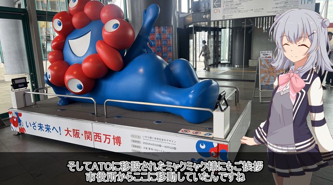 そるとさんはさらにATC(アジア太平洋トレードセンター)へ移動し、移設されたミャクミャク像へもご挨拶。