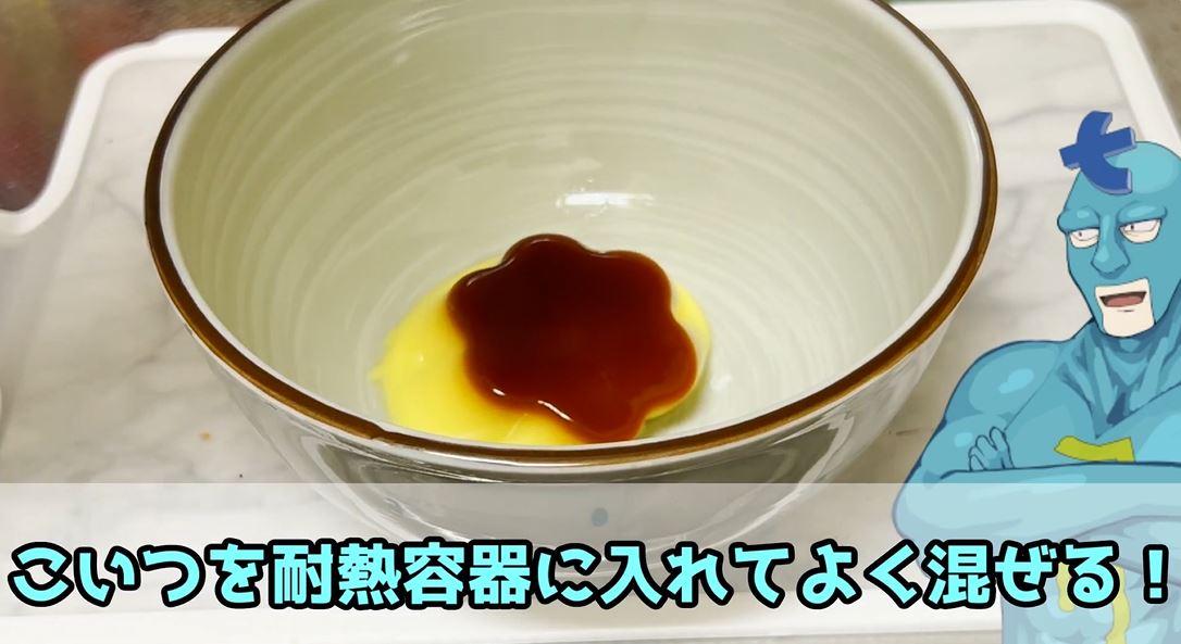そして卵液の代わりに使うのはプッチンプリン。耐熱容器に入れてよく混ぜました。