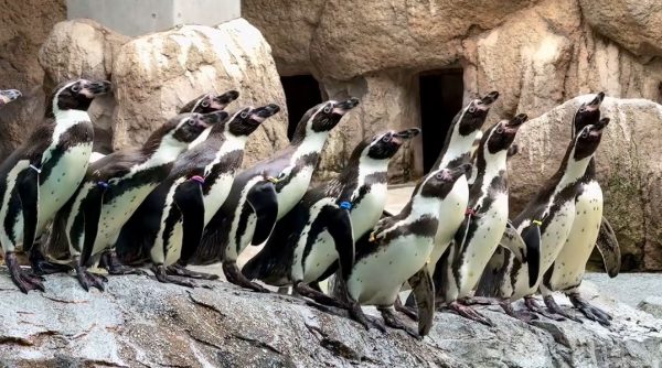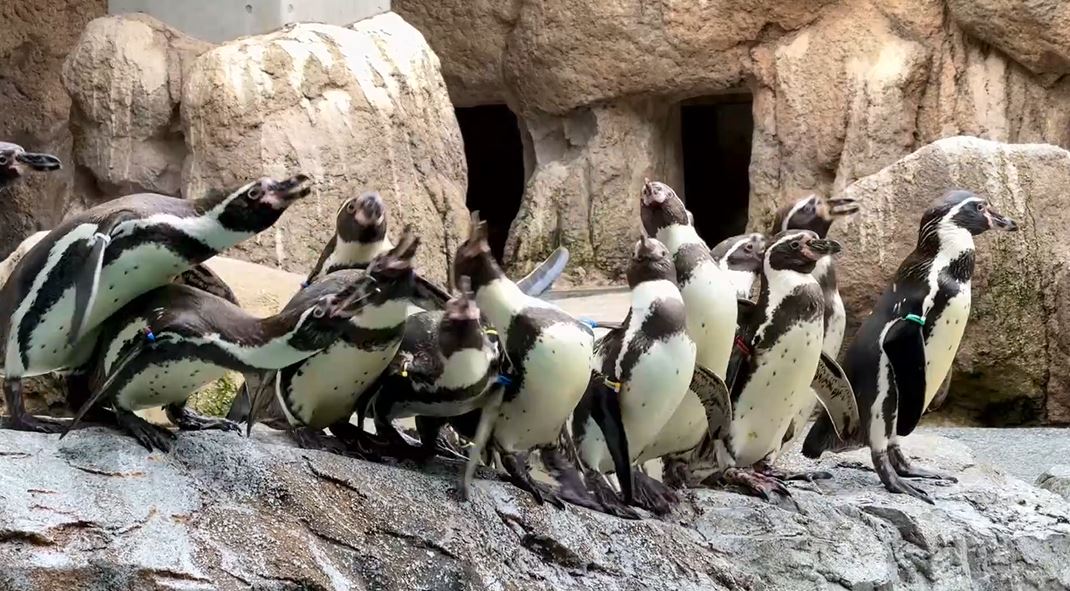 ブーケトスのような、勢いのあるフンボルトペンギンのランチタイム。スローでも倍速でも楽しいので、興味を持たれた方はぜひ動画をご覧ください。