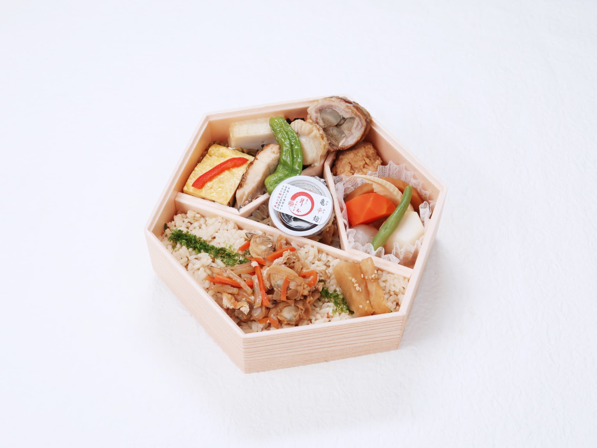 亀戸升本本店で親しまれている伝統の「あさり飯」を彩り豊かなお弁当に仕立てた、人気の一品です。