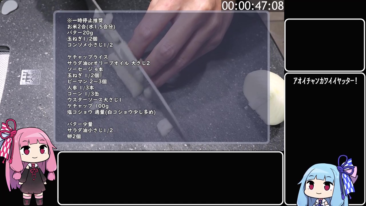 今回紹介するのは、ニコニコ動画に投稿された『【バターライスで作るお店のオムライス】「茜ちゃんが美味いと思うまで」R〒A 59:09 WR』というシャルさんの動画です。