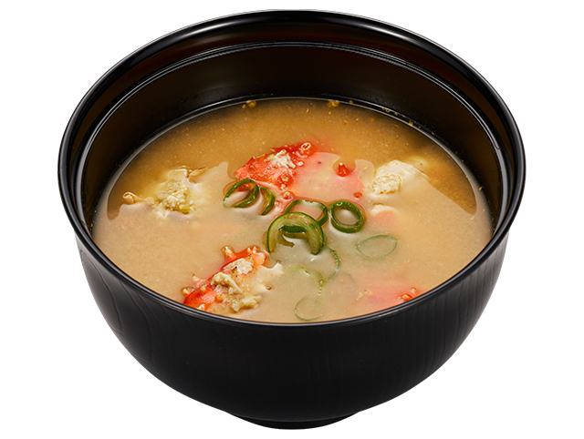 味噌汁に北海道産の殻付きたらば蟹を加えた、北海道郷土料理アレンジの一杯。