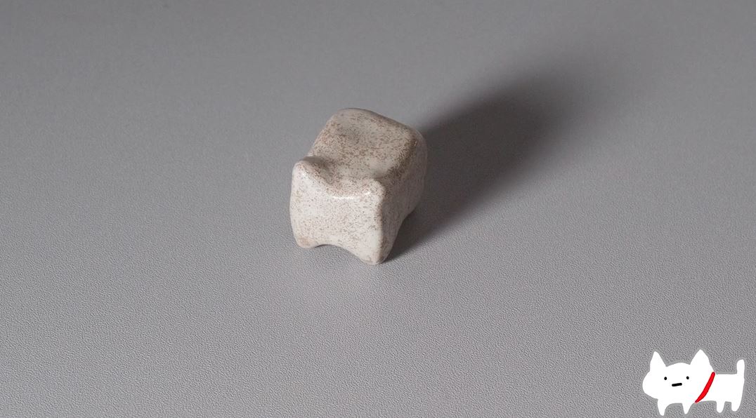まずは粘土を成形したら焼き、コーティングしてツルツルの仕上がりに。ちなみに白い段階では、「奥歯?」「かなり歯」「歯だろ」の声が寄せられていました。